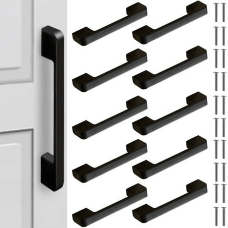 Set 10 Manere Mobila, Aplicare Versatila, Suruburi Incluse, din Aluminiu, 10.4x2.2x1.2cm, Negru Mat