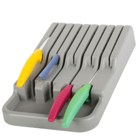 149,90 leiPreț unitarIndisponibil Organizator Cutite pentru Sertar, 9 Spatii, Picioruse Anti-Alunecare, Plastic, 17.5cm x 30cm, Gri