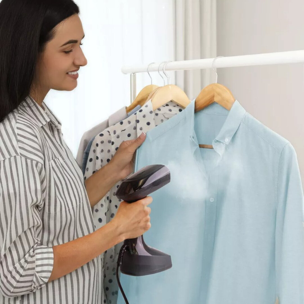 Aparatul de Calcat Vertical cu Aburi, portabil si puternic, ofera o solutie eficienta si rapida pentru a elimina cutele de pe haine, fiind ideal atat acasa, cat si in calatorii.