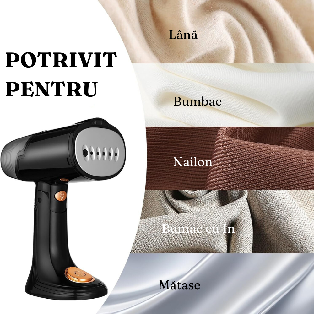 Cu o putere de 1500W, acest aparat genereaza abur intens, care netezeste rapid diverse tipuri de cute.