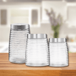Set 3 Recipiente, pentru Condimente, Paste, Cereale, Inchidere Ermetica, Capac din Inox, Sticla Rezistenta, Striatii, Transparente