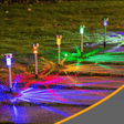 Lampa solara cu LED-uri de tip tarus, cu baterie incorporata si lumina LED multicolora.